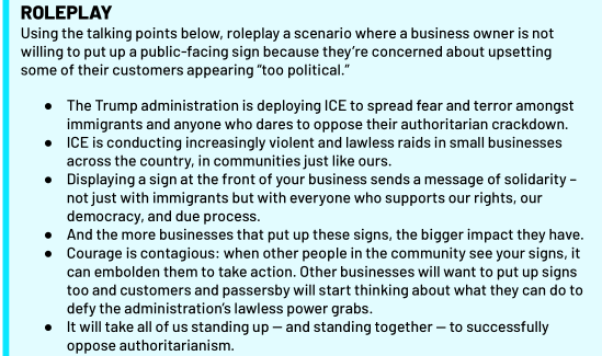 These signs demonstrate solidarity; not just with immigrant communities, but with everyone who is standing up against Trump’s power grabs. And when multiple businesses in our community display these signs, it has an even bigger impact. It lets everyone know that defiance is everywhere, and all of us have ways we can courageously oppose authoritarian actions from the government.